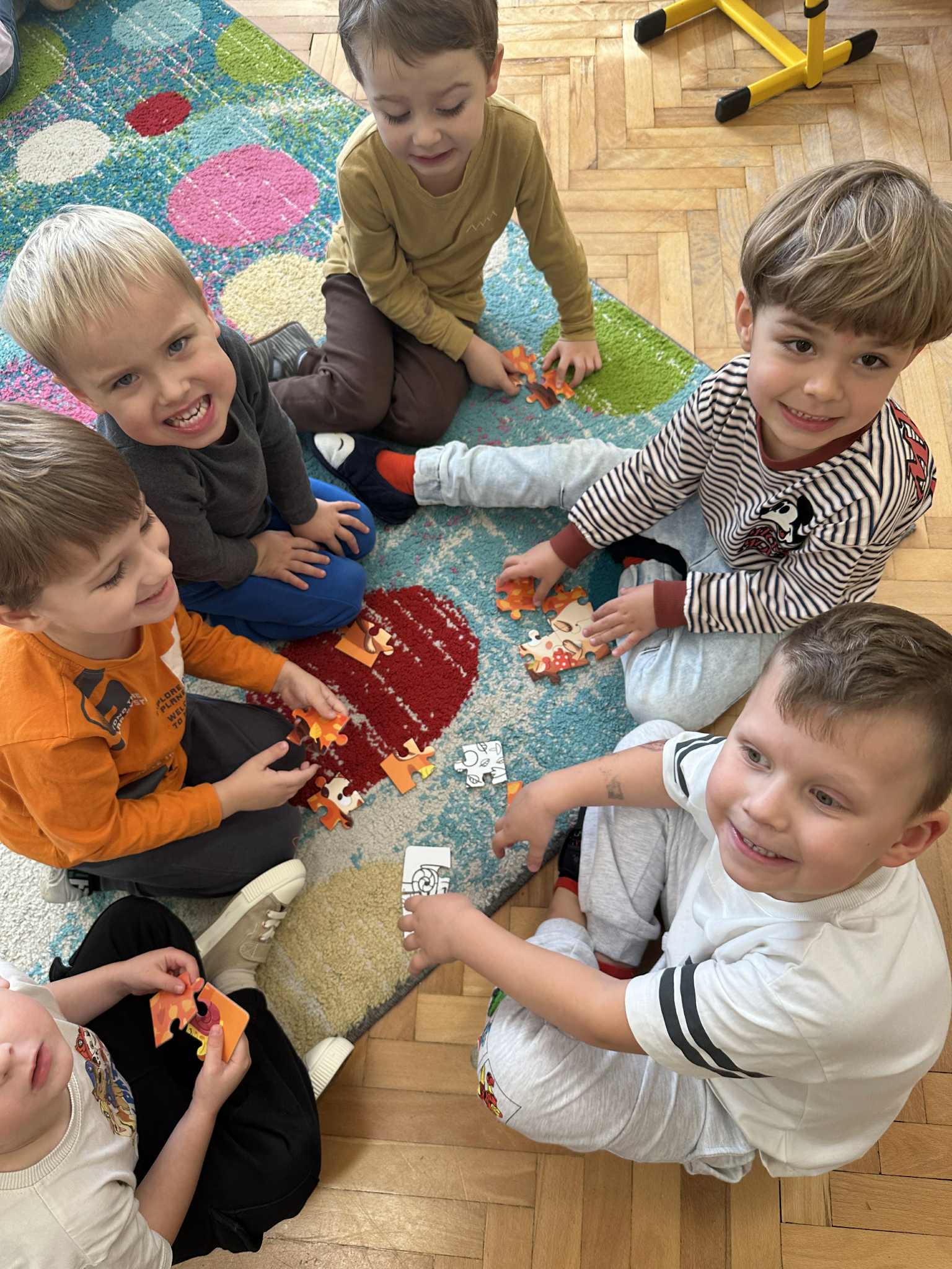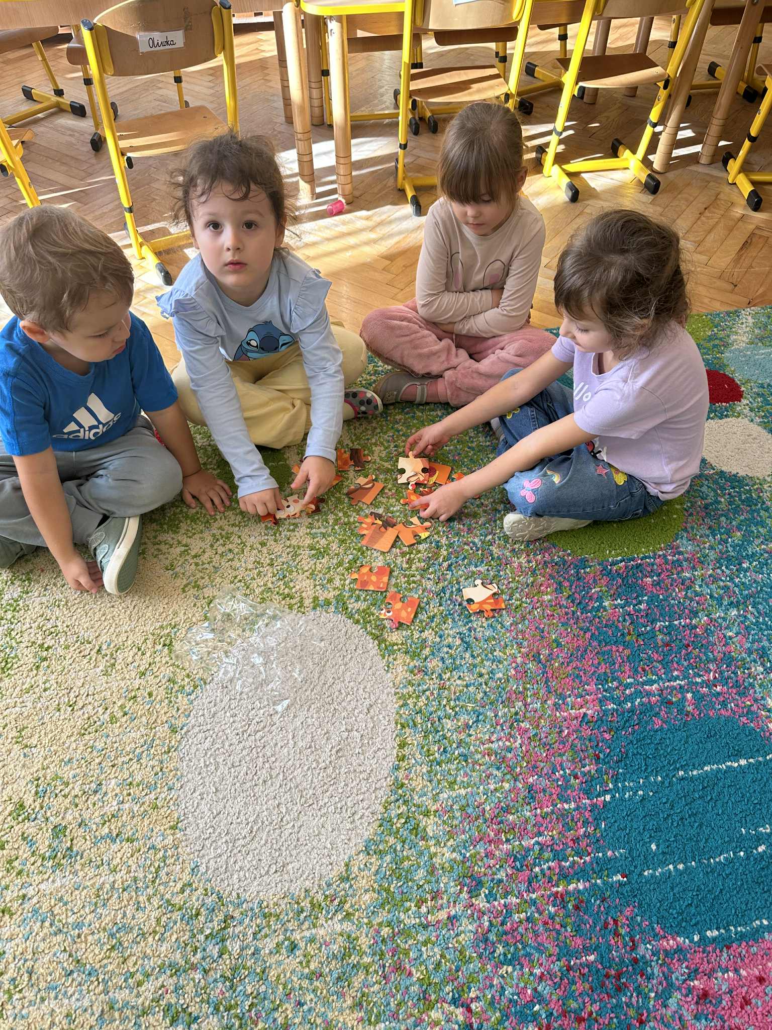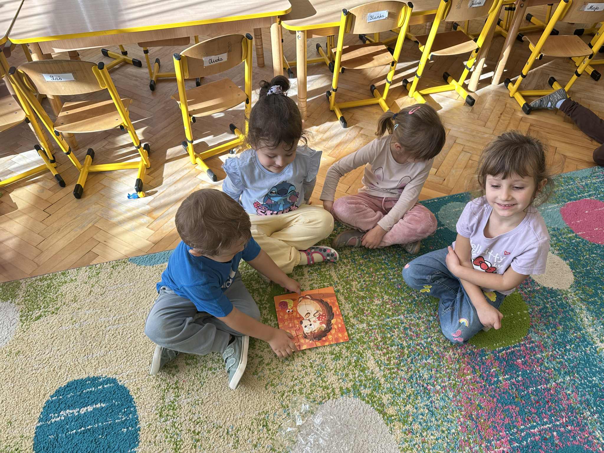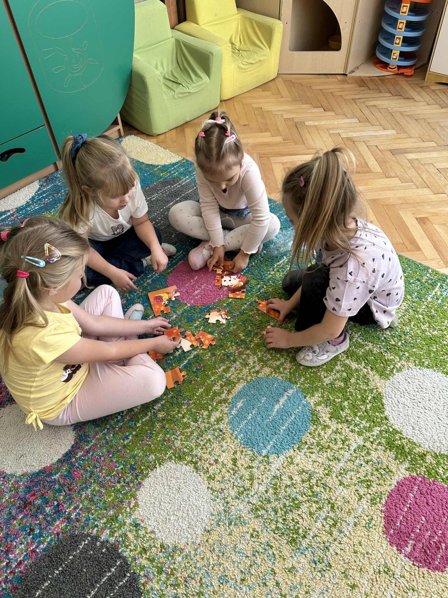 Samodzielnie ozdabiały jeżyka i w zespołach układały puzzle ,których bohaterem był jeż.