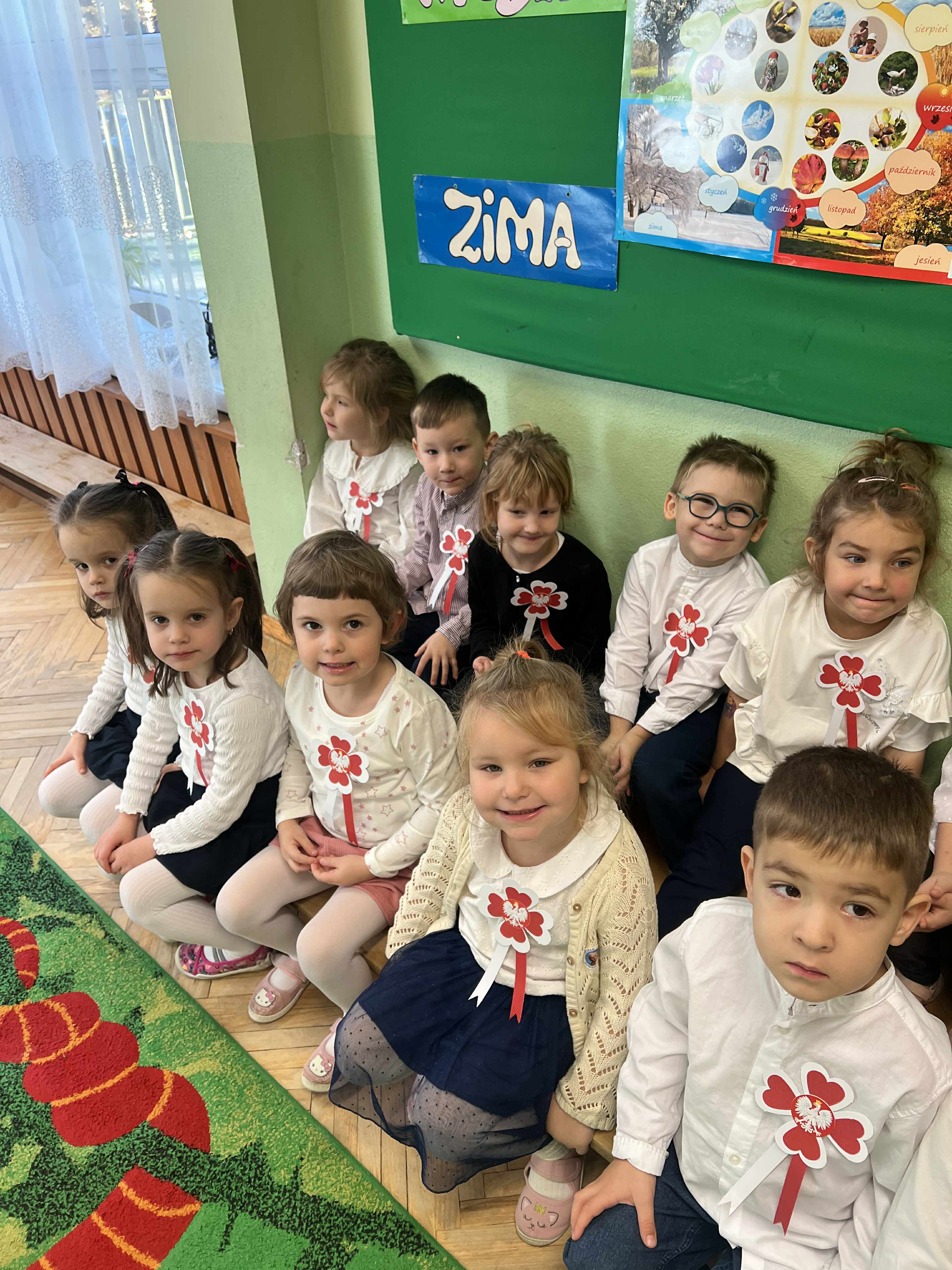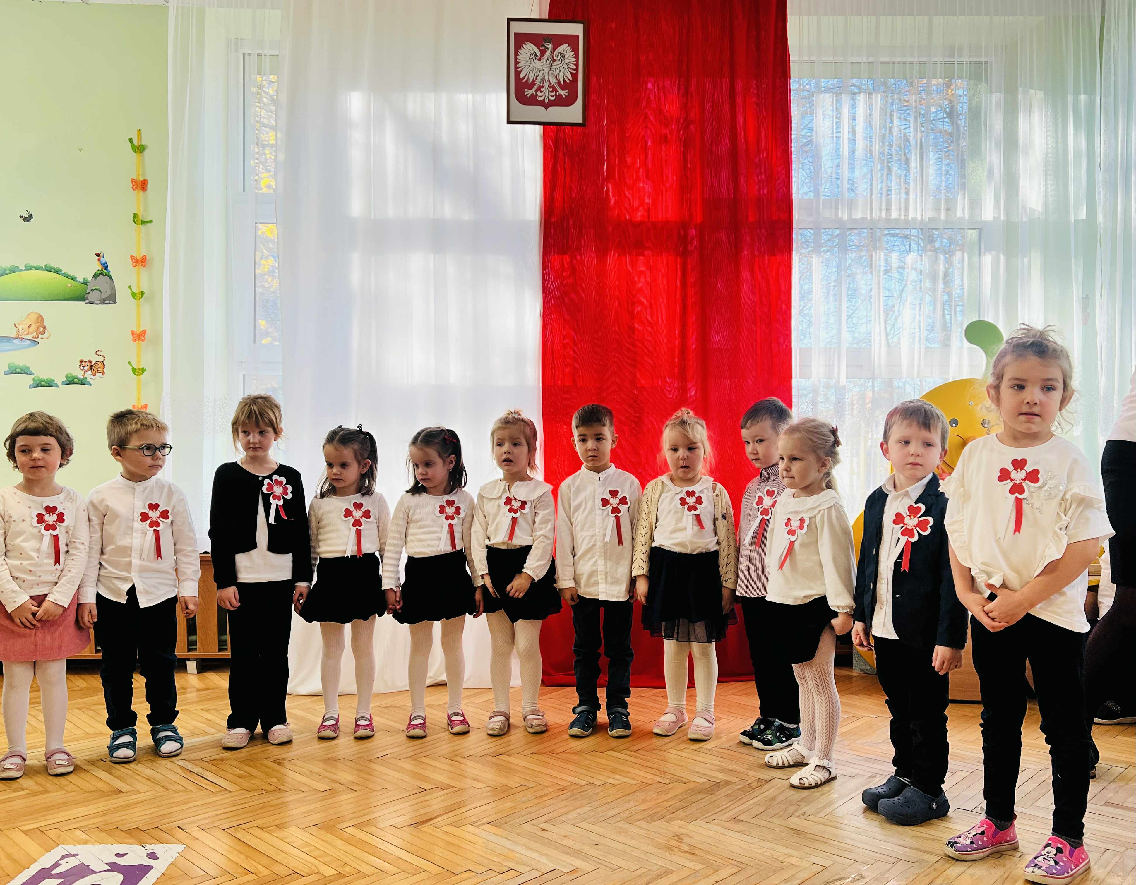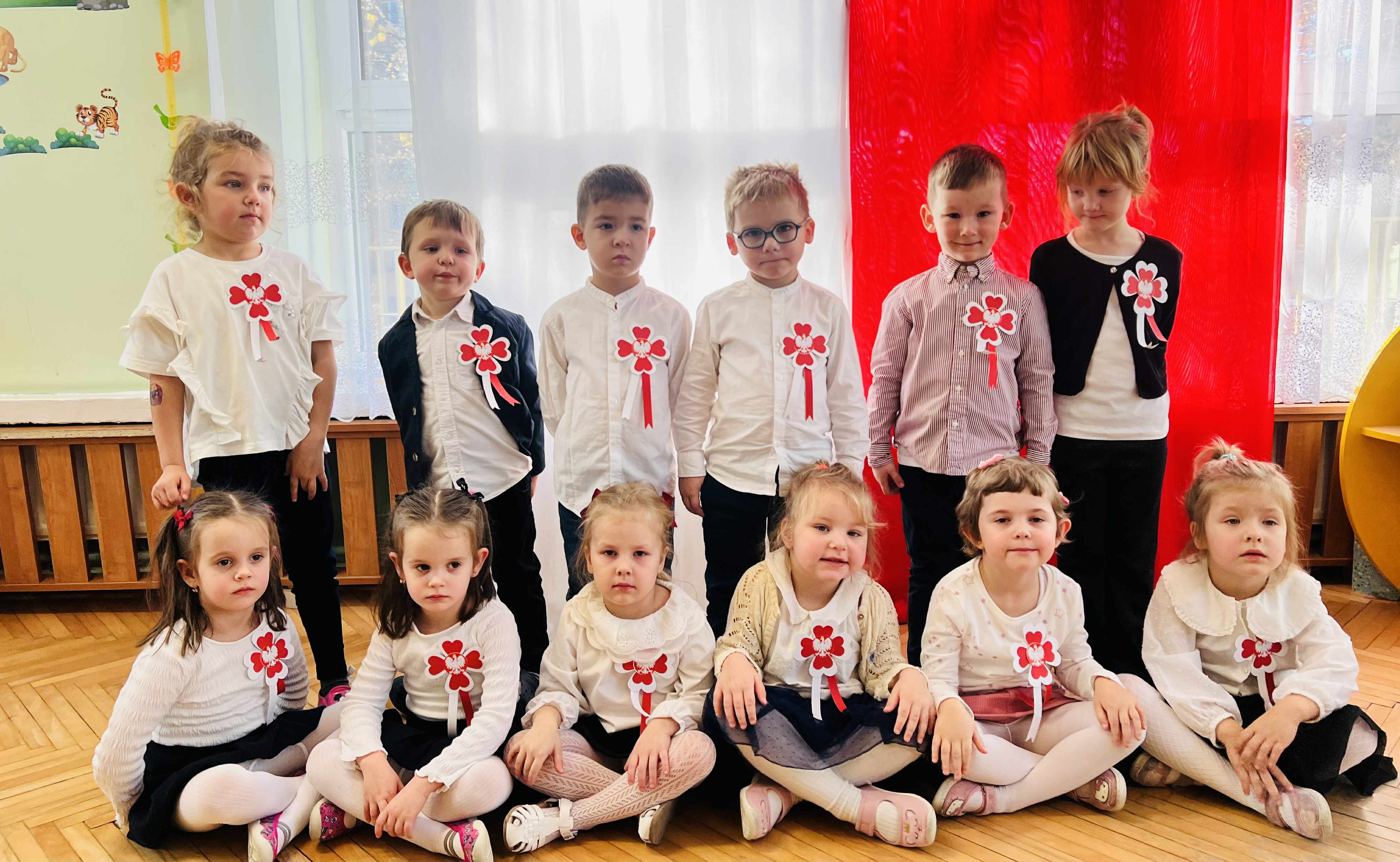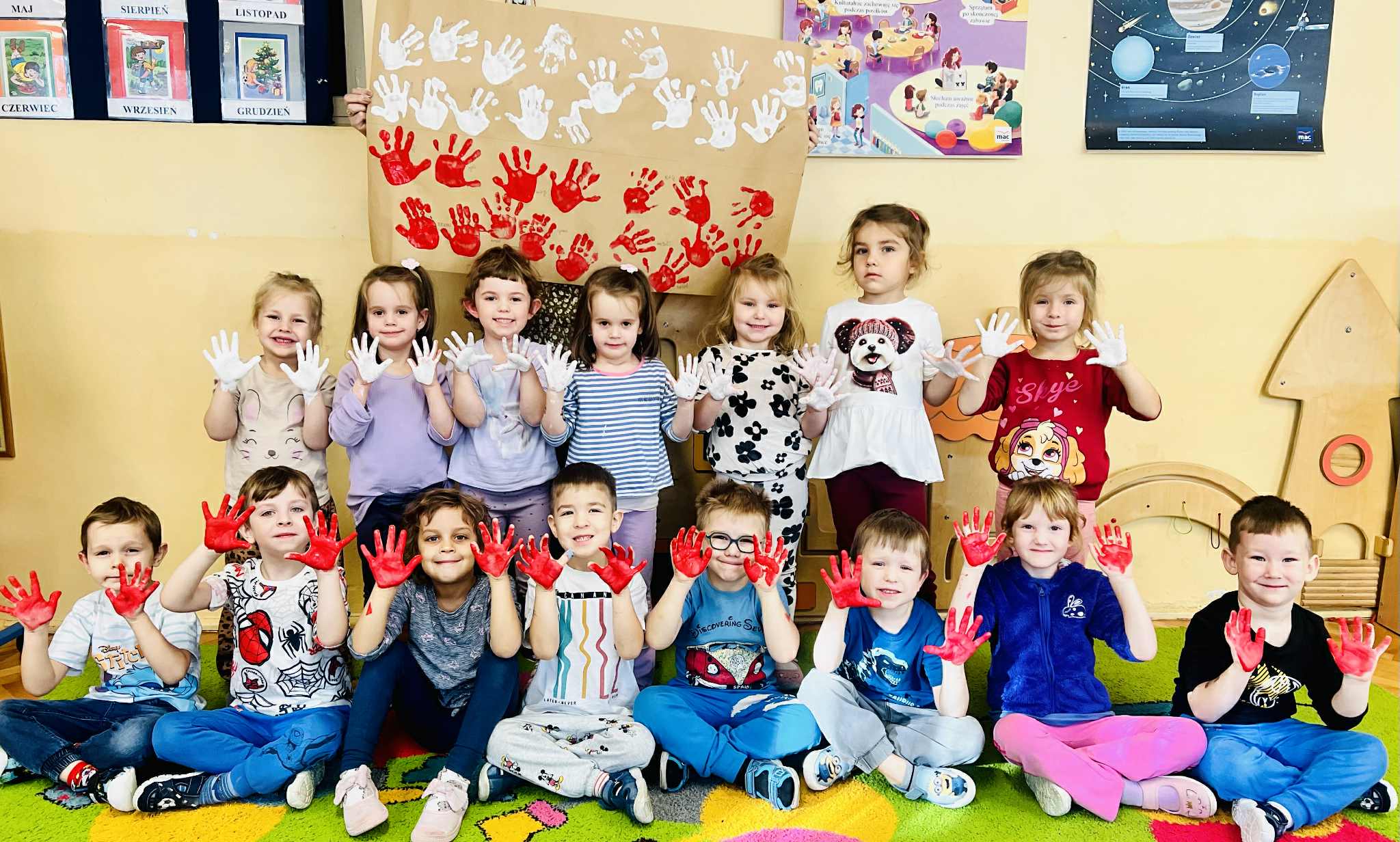 Dnia Niepodległości. Odbijając swoje rączki stworzyły flagę Polski.