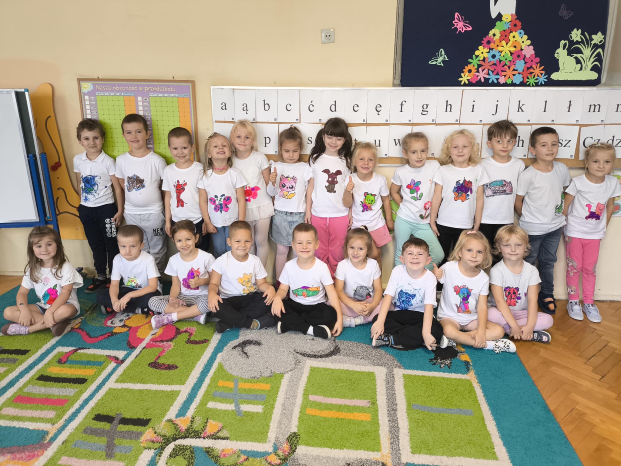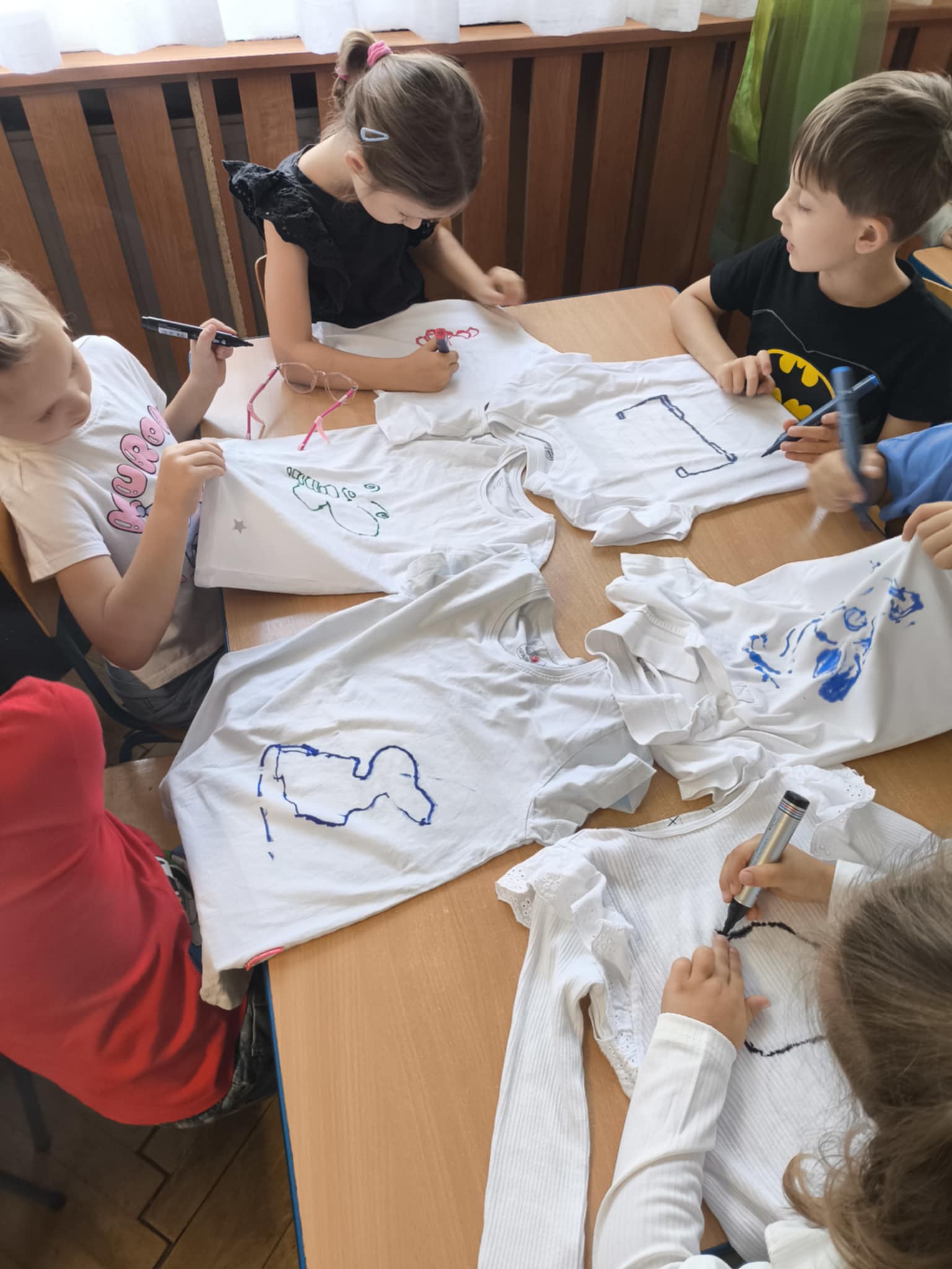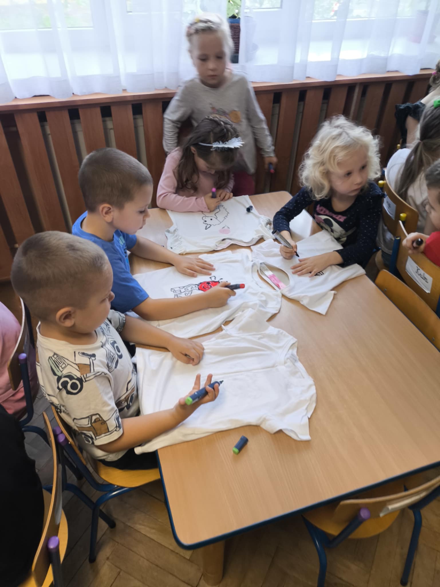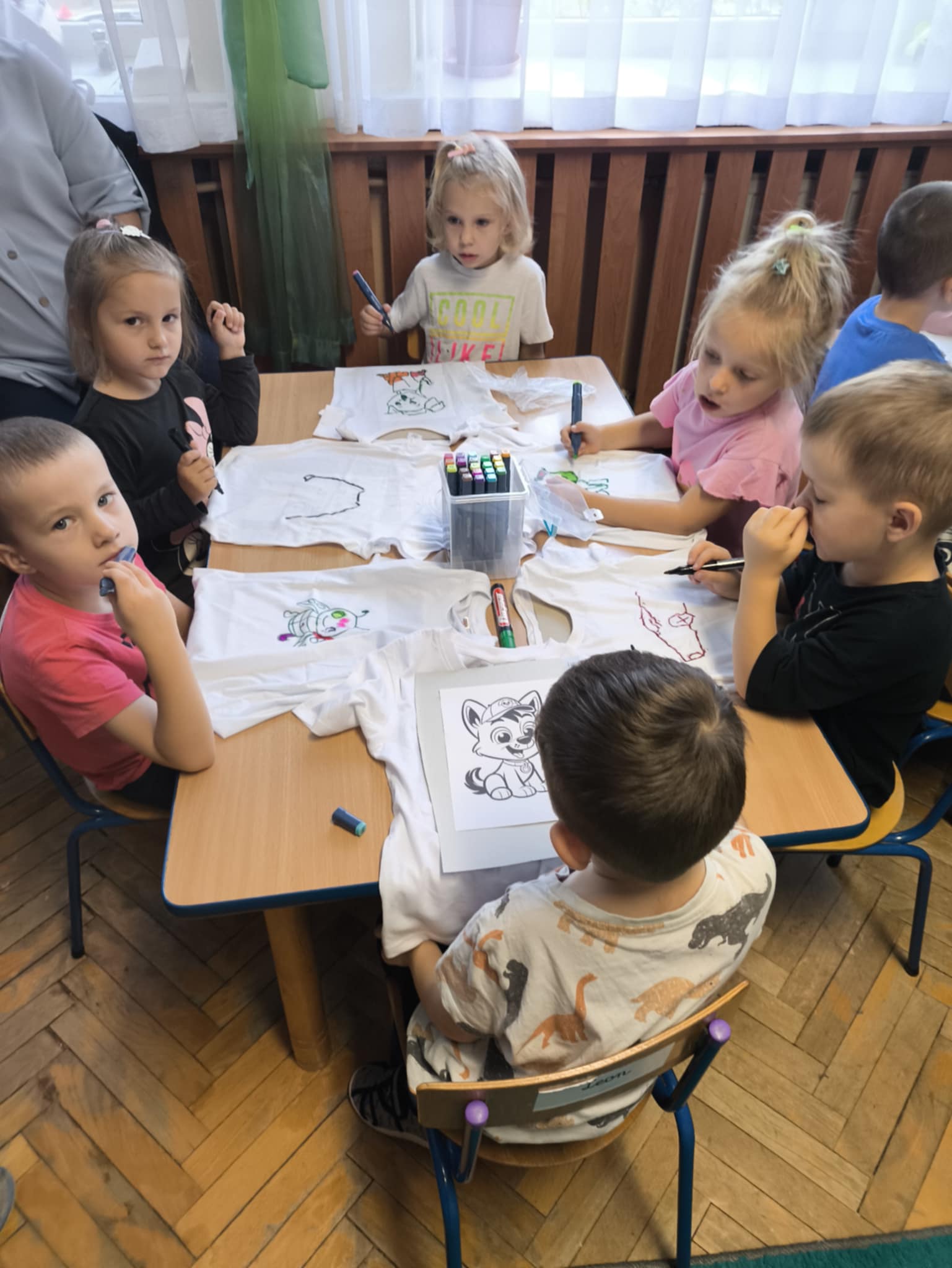 przedszkolaki same projektowały dekoracje na swoje tiszerty.