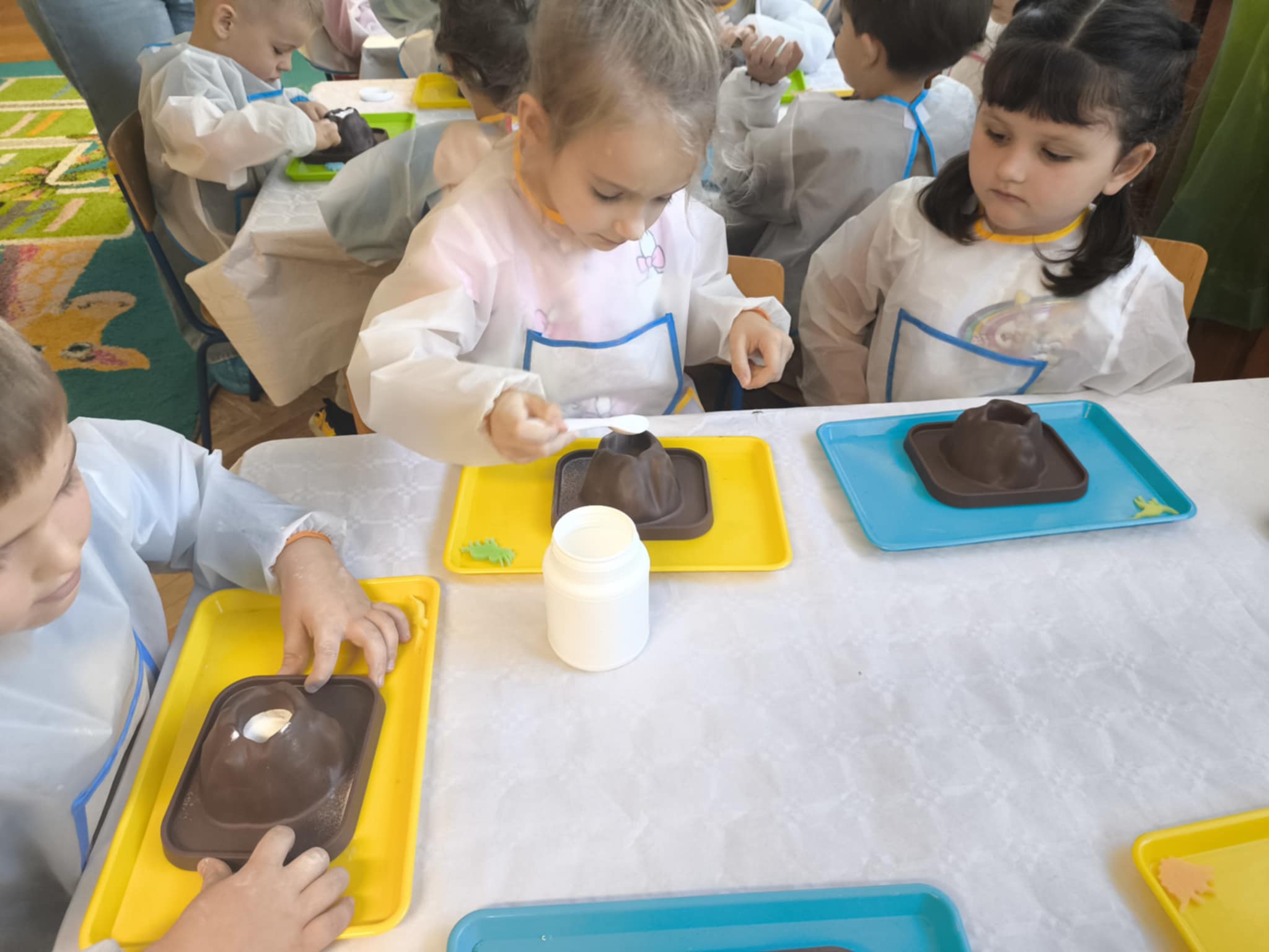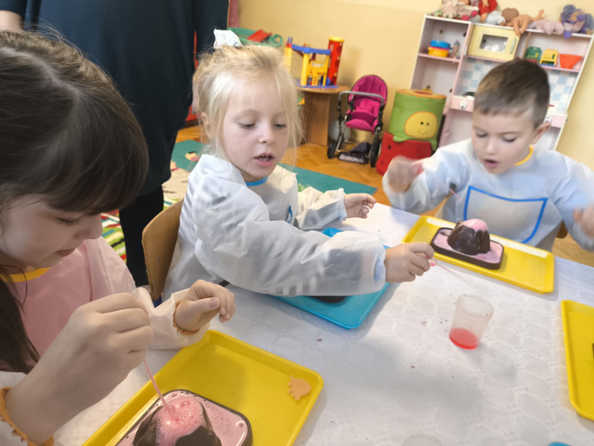 Dzisiaj naze Zajączki miały warsztaty o dinozaurach z sciencelab z okazji dnia chłopaka, rozbijali jajka żeby wydostać dinozaura, namaczali jajka i wychodziły małe dinozaury z gąbki a na koniec robili wulkan. To bł udany dzień