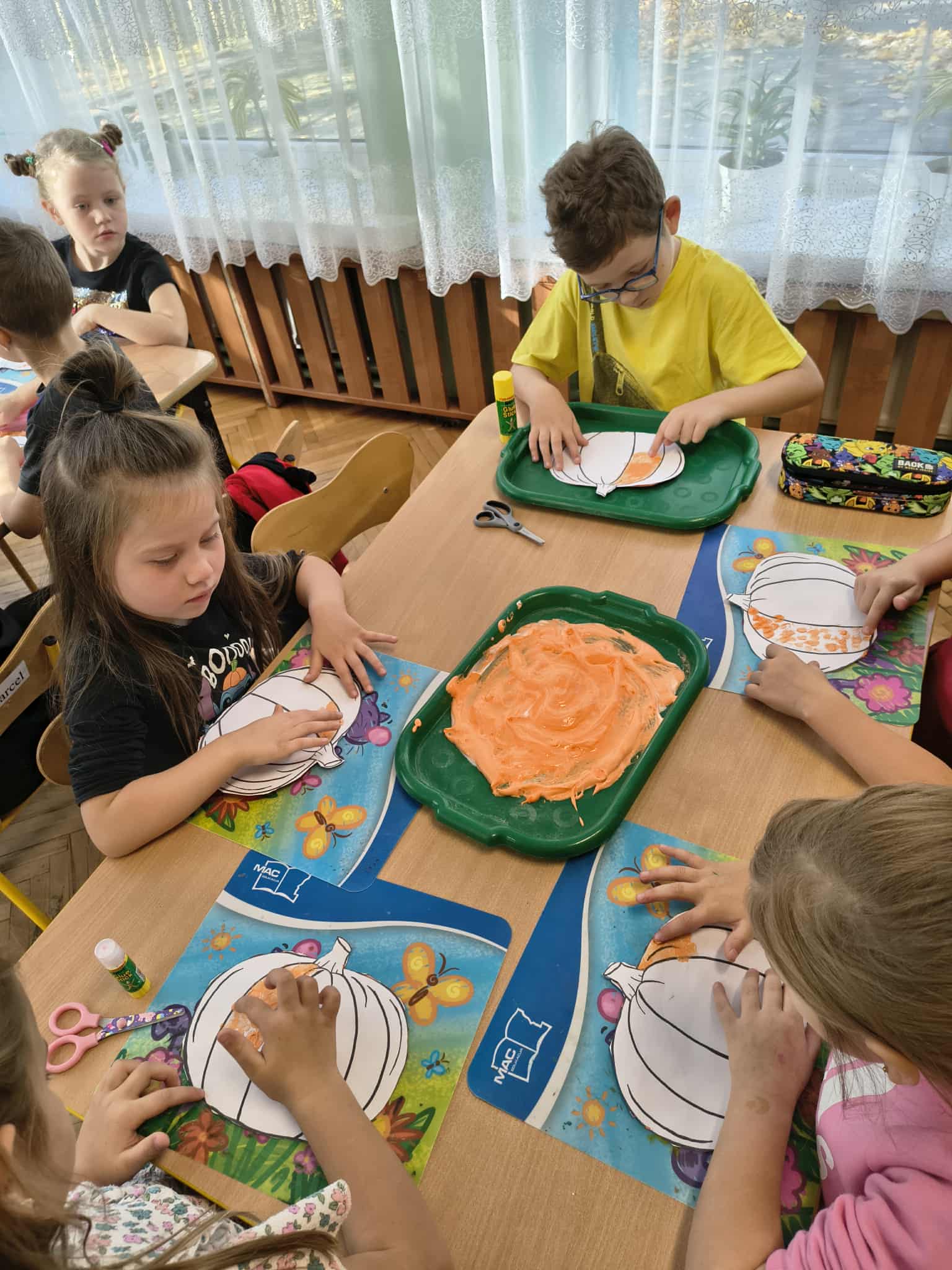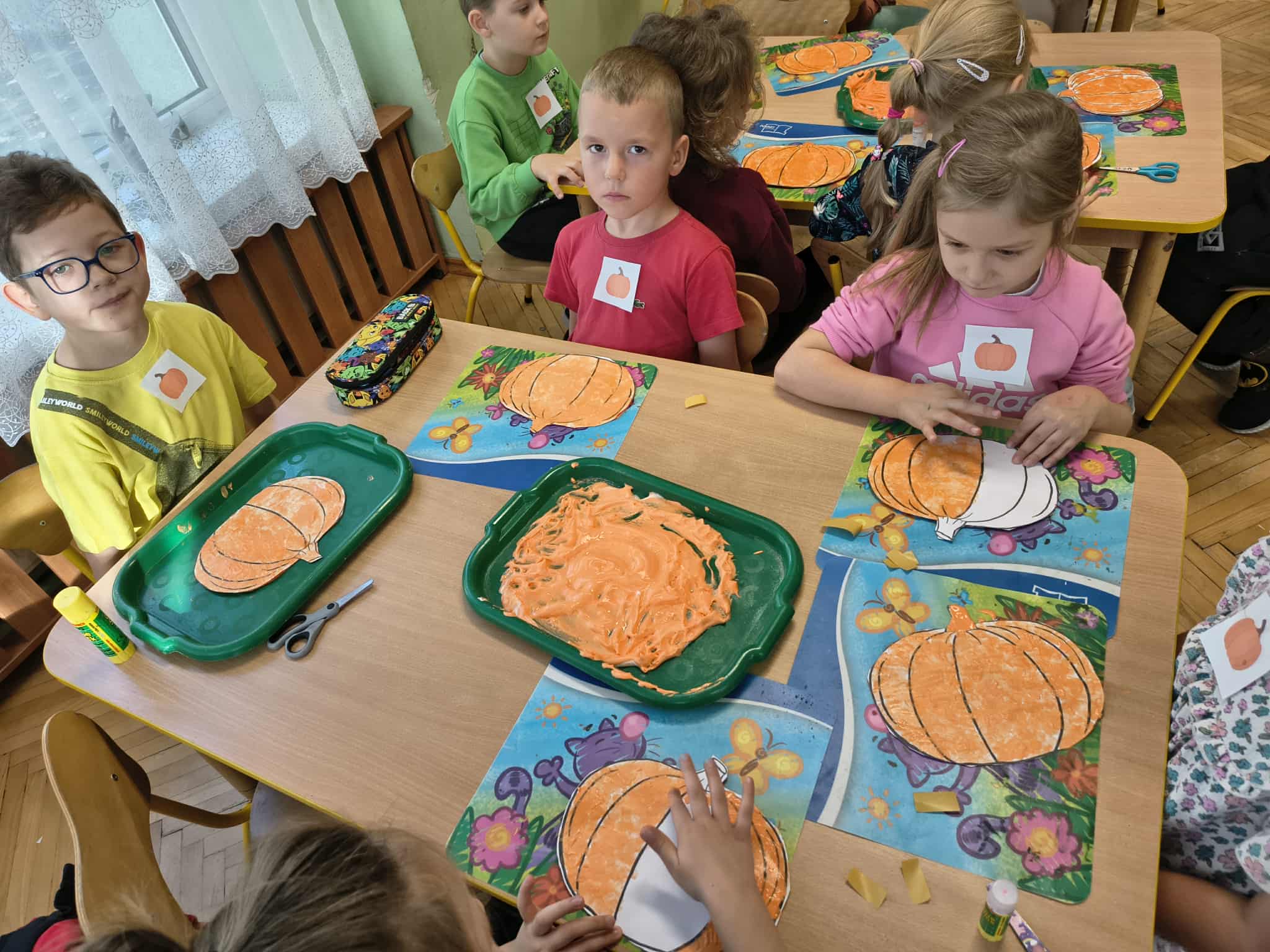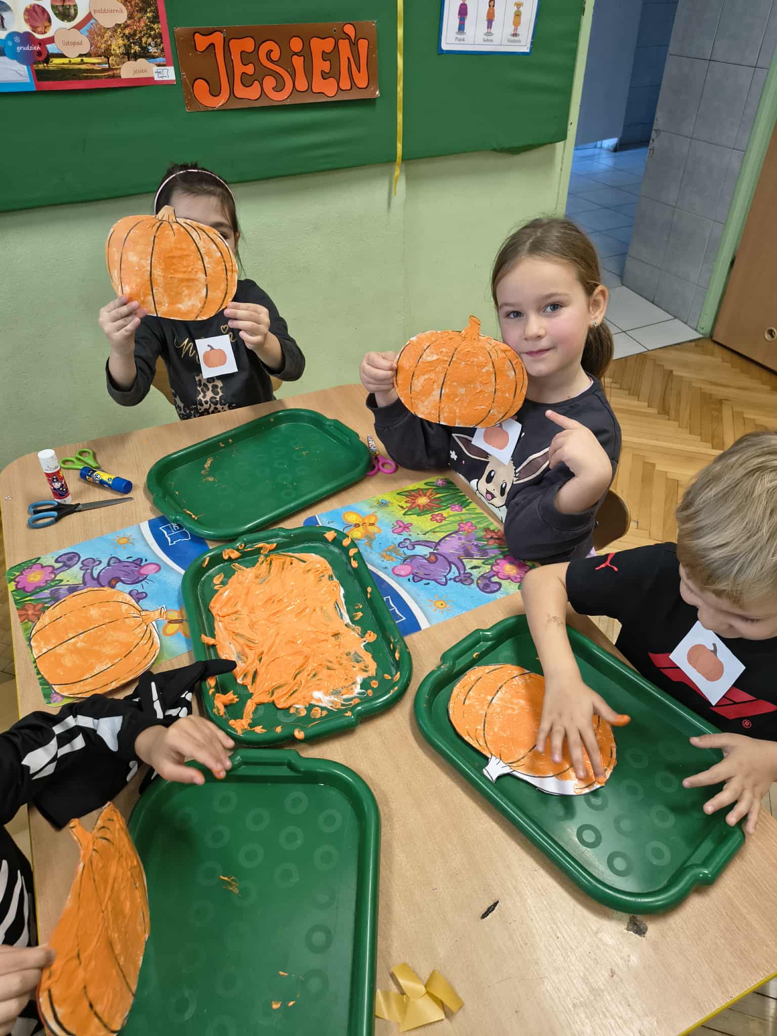 przez siebie dynie "rosnącą" farbą.Zabawa była świetna.