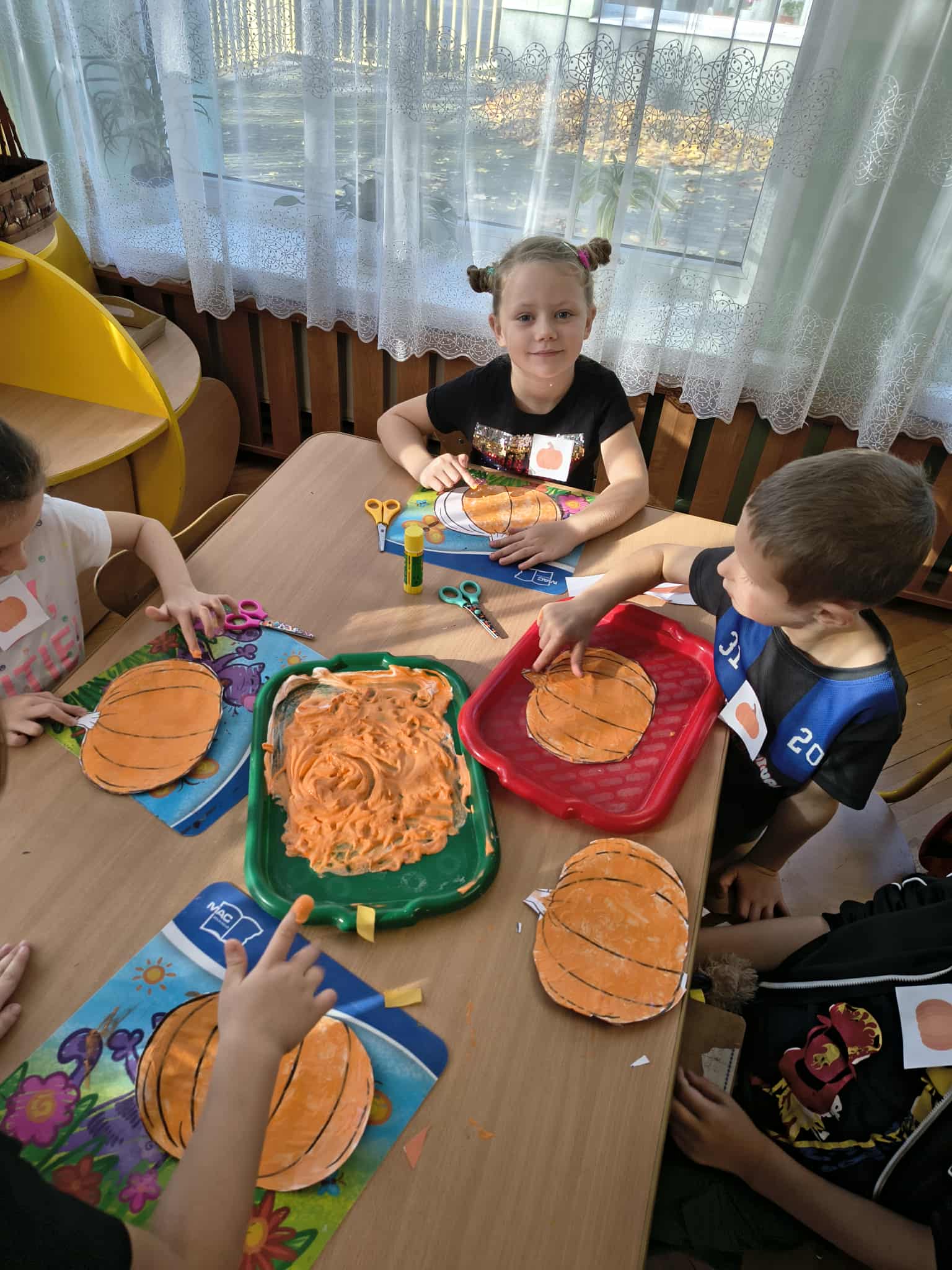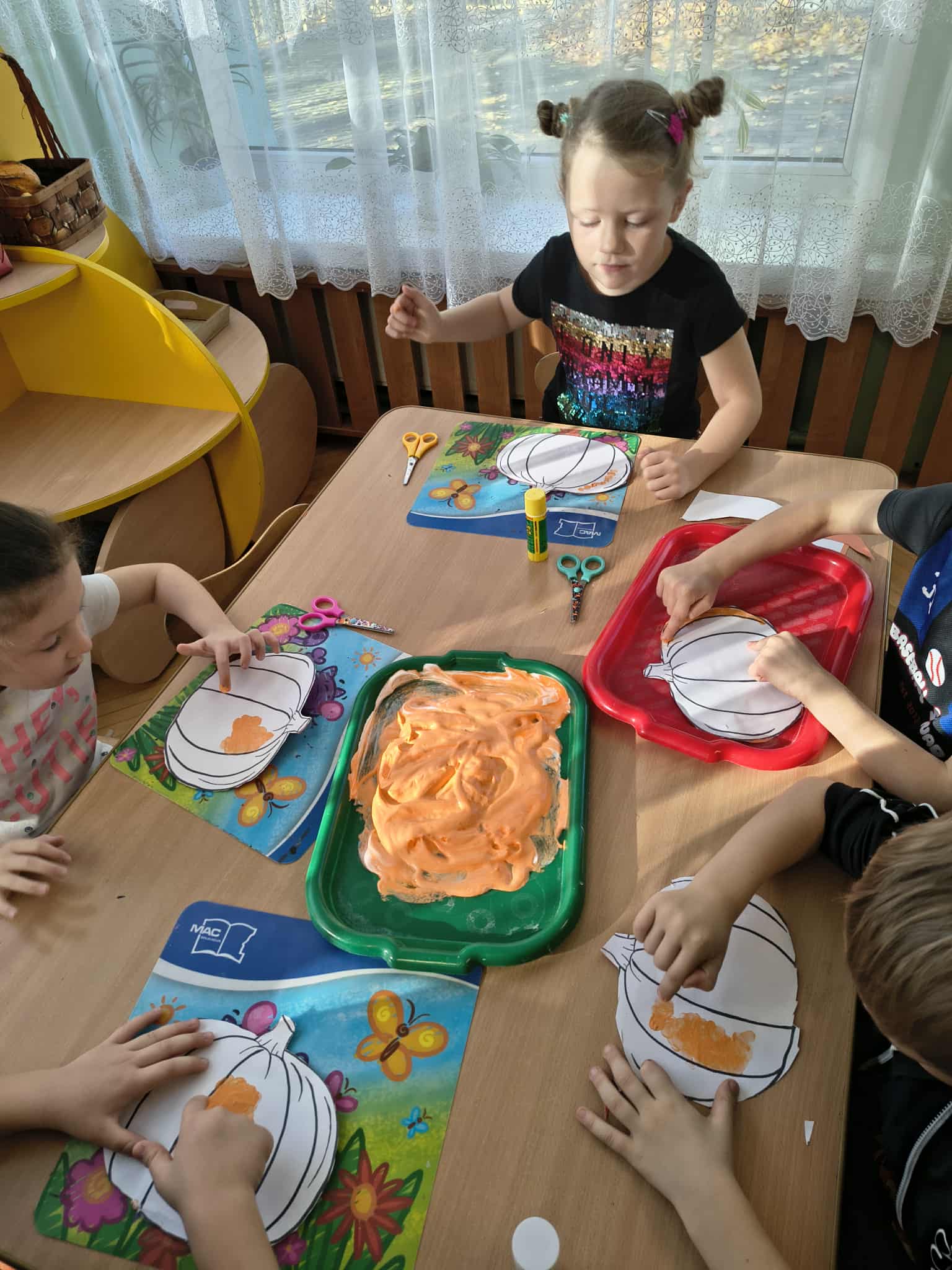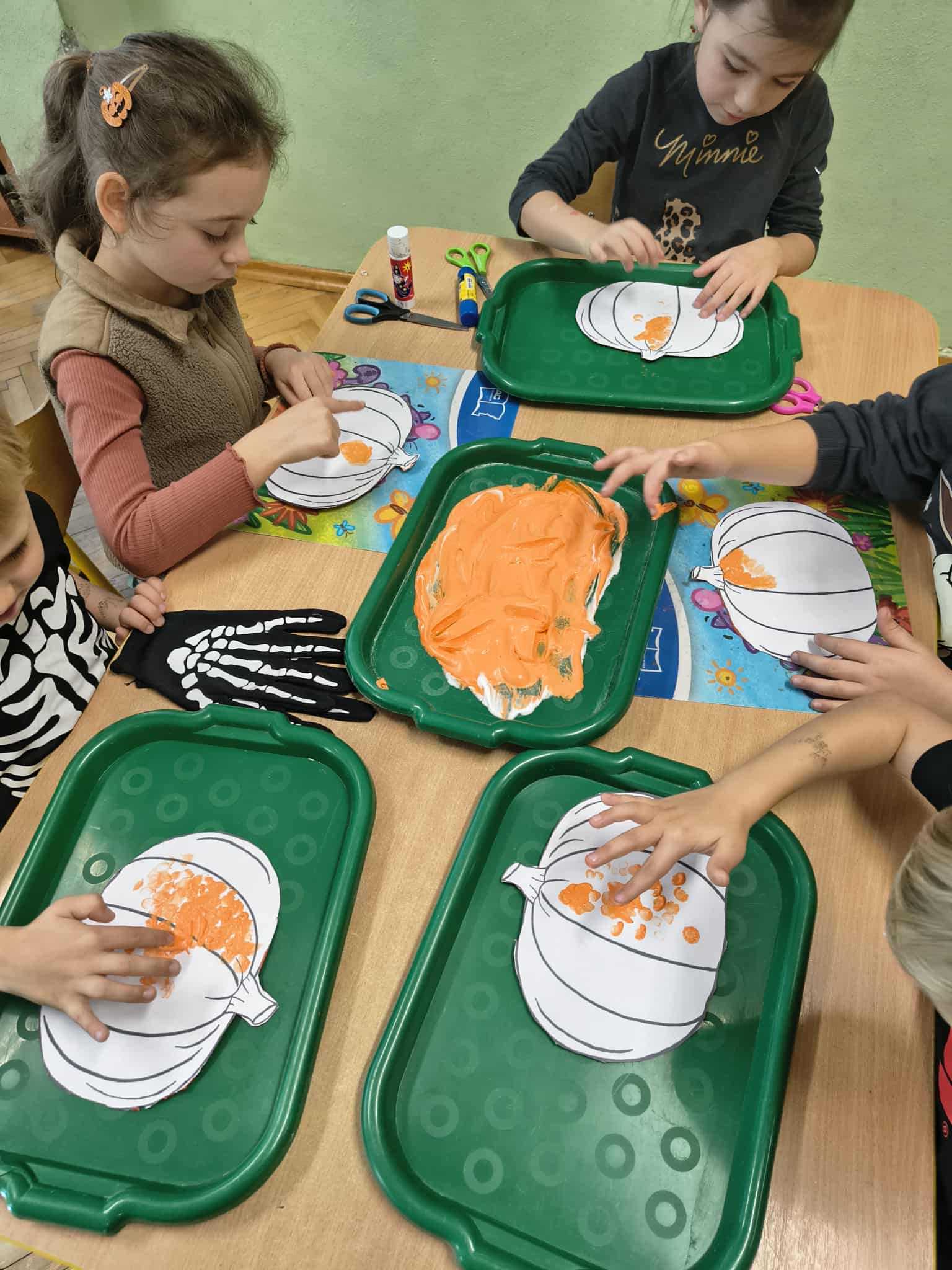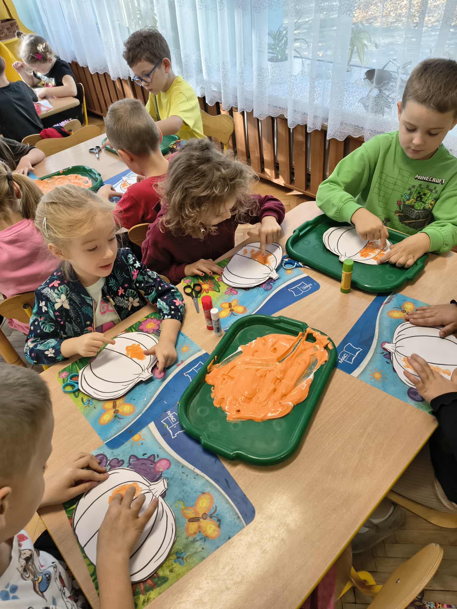 przez siebie dynie "rosnącą" farbą.Zabawa była świetna.